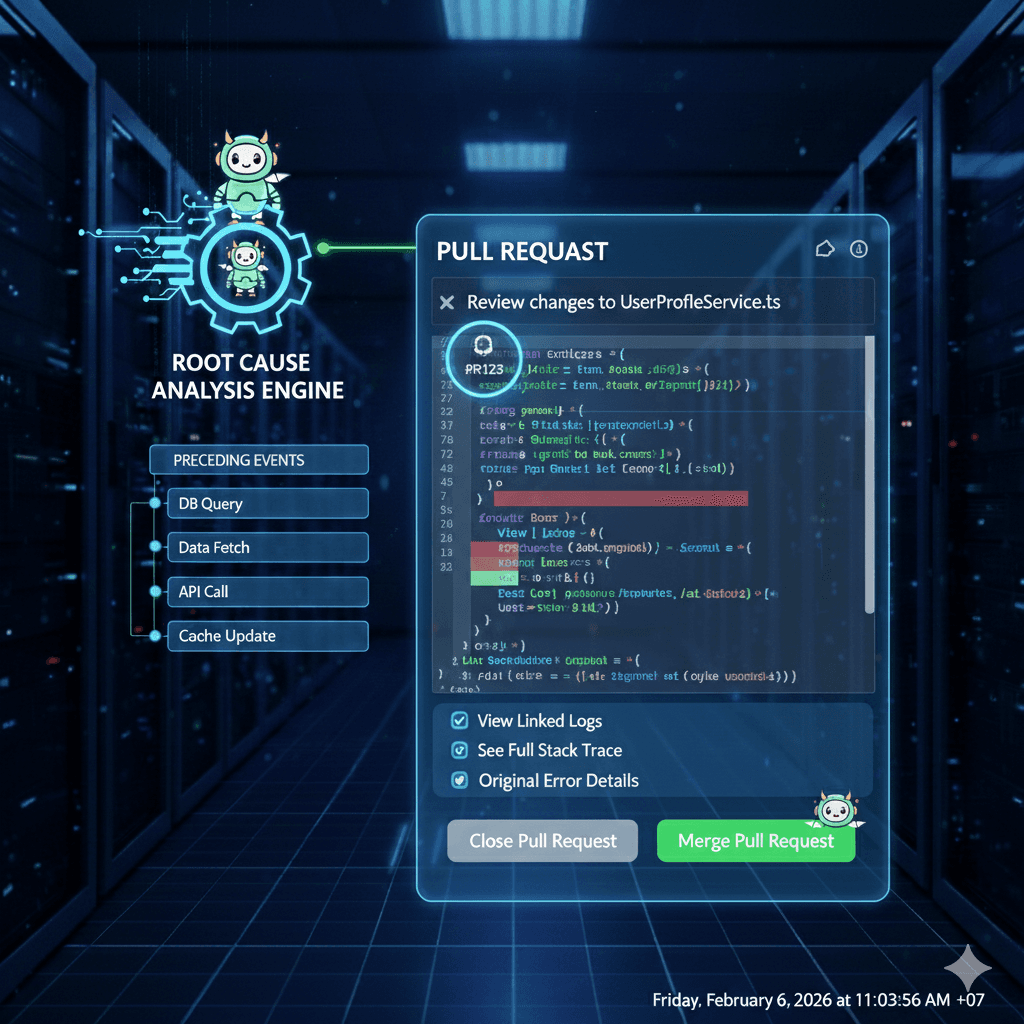 Get a ready-to-merge PR for 2 AM production crashes before you even open your laptop. Imp delivers the fix directly to your desk, slashing the Mean Time to Recovery (MTTR) for critical incidents.